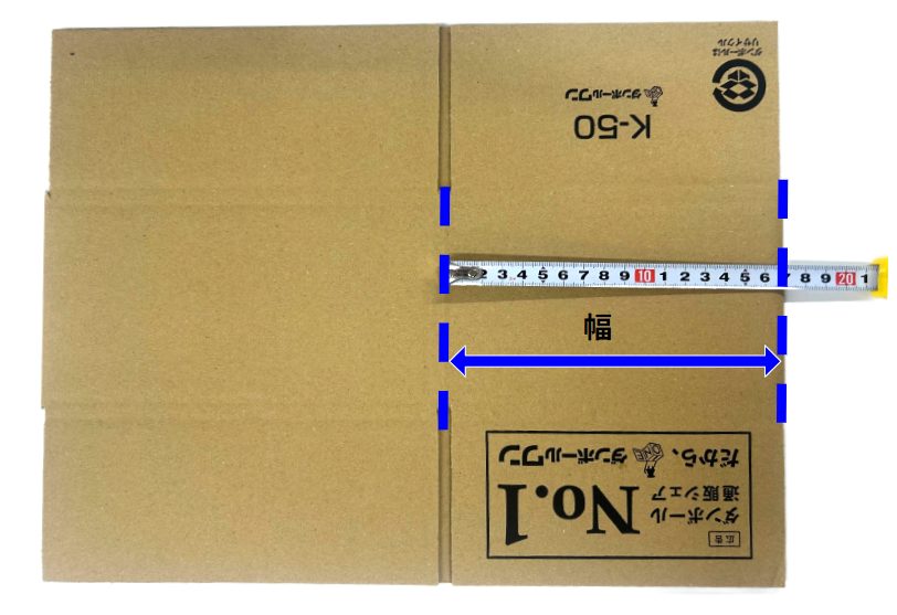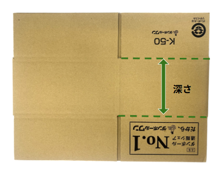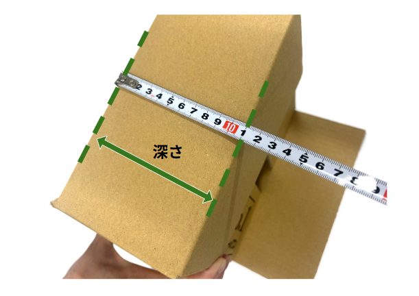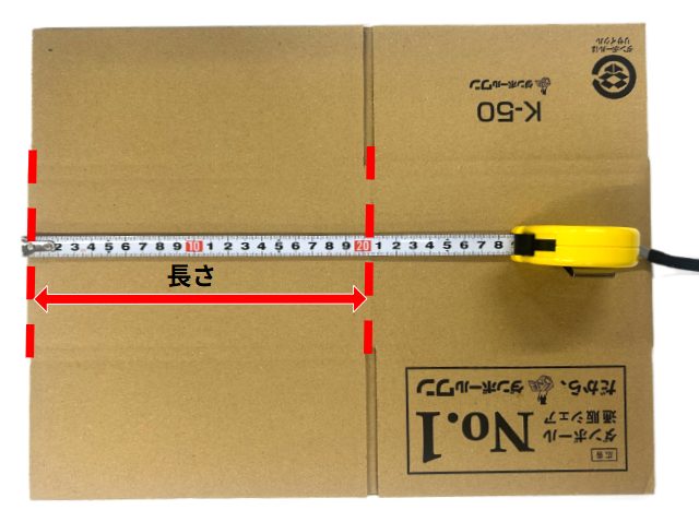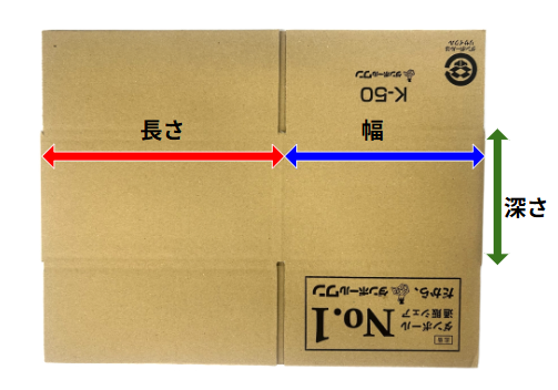 ダンボールをたたんだ状態で「長さ」「幅」「深さ」を測ります。折りたたんだ状態の長さ幅深さのサイズが「罫線寸法」です。