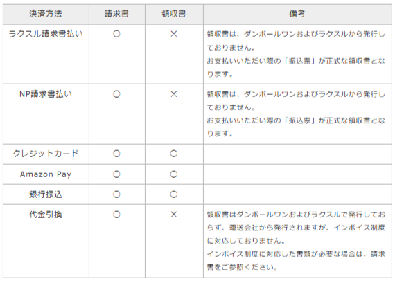 領収書の発行可否は、お支払い方法により異なります。