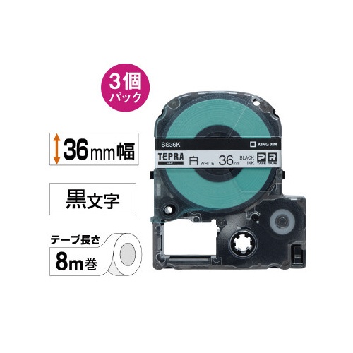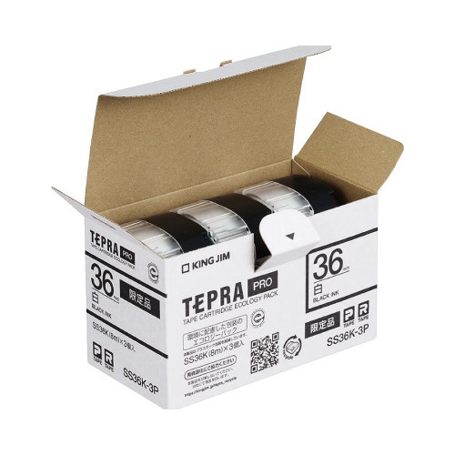 PROテ−プ3個パック白・黒文字36mm