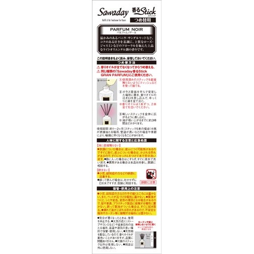 注意事項 | ※小児、認知症の方などの手の届くところには置かない。また、ペットが近づける場所に置かない。 ※薬液がつくと、シミや変色、変形の原因となる場合があるので、壁や家具、プラスチック製品に接触する場所に置かない。誤って薬液がついた場合は、すぐに拭き取る。 ※倒れて液がこぼれる恐れがあるので、不安定な場所やカーテン等に接触する場所には置かない。 ※気分が悪くなったときは、使用を中止する。 ※火気の近く(ストーブやコンロなど)や直射日光の当たる場所、高温や湿気の高い場所で保管・使用しない。 ※天然物を配合しているので、香りオイルが黄色いことがありますが、品質に問題ありません。 ※付属のスティック以外は使用しない。 以下の点にご注意ください