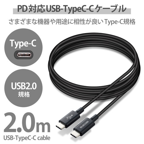 2. USBケーブル C−C 準高耐久 2m ブラック