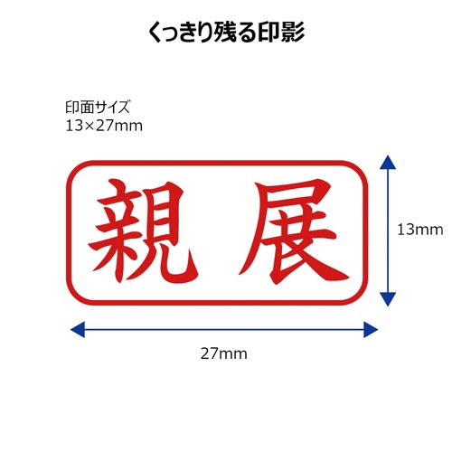 注意事項 | ※キャップレスタイプですのでキャップを取り外す手間がなく、片手で素早く捺印できます。 ※耐水性・耐光性に優れた顔料系インキを採用。使い終わりまでハッキリと濃い印影が続きます。本体の窓からインキ残量が見えるので交換時期が一目で分かります。 ※ロック機能 使わない時はしっかりロックできるので安心して持ち運びできます。 ※側面の二次元バーコードを読み取ると詳しい取扱い方法をWEBで確認できます。 ※印面の位置合わせがしやすい捺印ガイド付きです。 以下の点にご注意ください