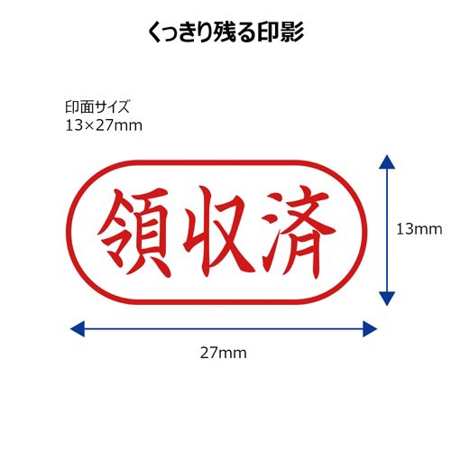 注意事項 | ※キャップレスタイプですのでキャップを取り外す手間がなく、片手で素早く捺印できます。 ※耐水性・耐光性に優れた顔料系インキを採用。使い終わりまでハッキリと濃い印影が続きます。本体の窓からインキ残量が見えるので交換時期が一目で分かります。 ※ロック機能 使わない時はしっかりロックできるので安心して持ち運びできます。 ※側面の二次元バーコードを読み取ると詳しい取扱い方法をWEBで確認できます。 ※印面の位置合わせがしやすい捺印ガイド付きです。 以下の点にご注意ください