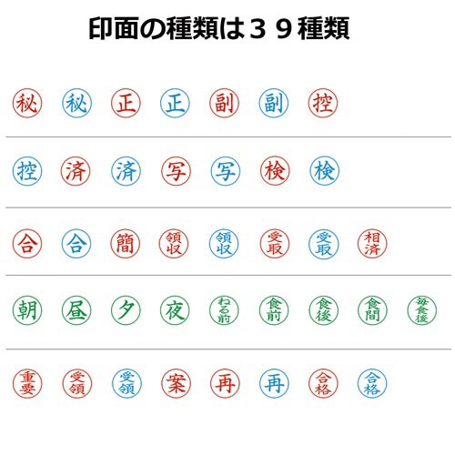 注意事項 | ※キャップレスタイプですのでキャップを取り外す手間がなく、片手で素早く捺印できます。 ※耐水性・耐光性に優れた顔料系インキを採用。使い終わりまでハッキリと濃い印影が続きます。本体の窓からインキ残量が見えるので交換時期が一目で分かります。 ※ロック機能 使わない時はしっかりロックできるので安心して持ち運びできます。 ※側面の二次元バーコードを読み取ると詳しい取扱い方法をWEBで確認できます。 ※印面の位置合わせがしやすい捺印ガイド付きです。 以下の点にご注意ください