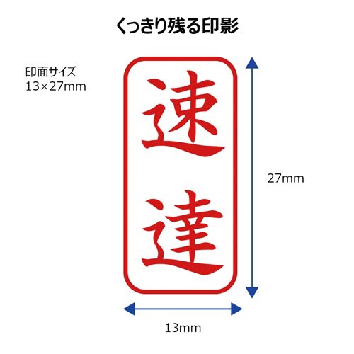 注意事項 | ※キャップレスタイプですのでキャップを取り外す手間がなく、片手で素早くなつ印できます。 ※耐水性・耐光性に優れた顔料系インキを採用。使い終わりまでハッキリと濃い印影が続きます。本体の窓からインキ残量が見えるので交換時期が一目で分かります。 ※ロック機能 使わない時はしっかりロックできるので安心して持ち運びできます。 ※側面の二次元バーコードを読み取ると詳しい取扱い方法をWEBで確認できます。 ※印面の位置合わせがしやすい捺印ガイド付きです。 以下の点にご注意ください