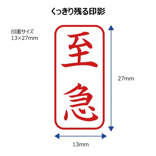 | 注意事項 | ※キャップレスタイプですのでキャップを取り外す手間がなく、片手で素早くなつ印できます。耐水性・耐光性に優れた顔料系インキを採用。使い終わりまでハッキリと濃い印影が続きます。本体の窓からインキ残量が見えるので交換時期が一目で分かります。ロック機能 使わない時はしっかりロックできるので安心して持ち運びできます。側面の二次元バーコードを読み取ると詳しい取扱い方法をWEBで確認できます。印面の位置合わせがしやすい捺印ガイド付きです。 以下の点にご注意ください