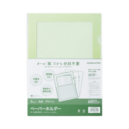 ペーパーホルダー<オール紙>(窓付き)5枚入り緑