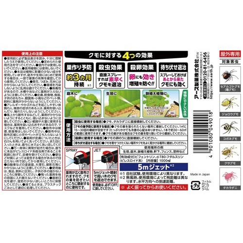 注意事項 | ※使用前に必ず製品表示を読み、十分に理解した上で使用してください。定められた使用方法を守ってください。室内では使用しないでください。食用植物には使用しないでください。本品は植物に影響の少ない成分を使用していますが庭木や生垣にはじめて使用する場合は一部で薬害の有無を確認してから使用してください。草花、つぼみ、花弁にはかからないようにしてください。環境を汚染しないように乱用は避けてください。魚毒性があるので、水槽や池などに薬剤が入らないように注意してください。皮膚、飲食物、食器、子供のおもちゃ、観賞魚、小鳥などのペット類、飼料に薬剤がかからないようにしてください。 以下の点にご注意ください