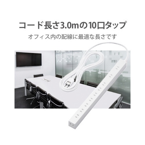 10個口タップ/2P/3m/磁石付き/ホワイト