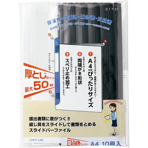 スライドバーファイルA4縦50枚とじ黒10冊×10