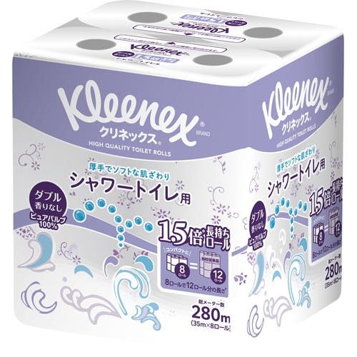 クリネックス長持ちシャワートイレ8ロールダブル×8