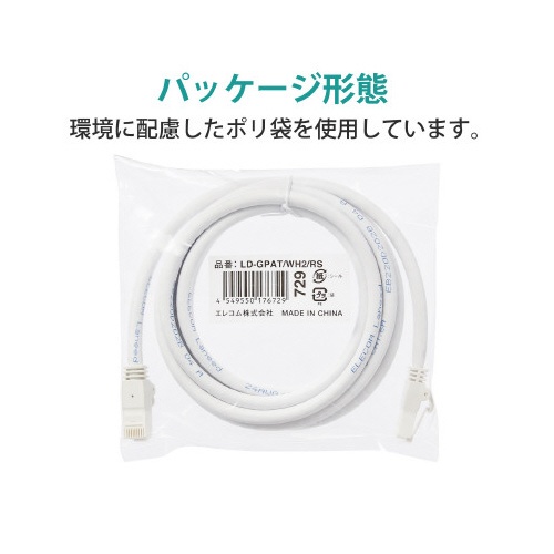 2. CAT6ALANケーブル/2m/ヨリ線/ホワイト