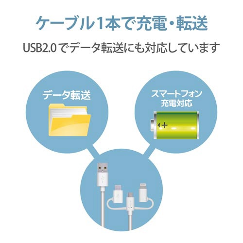 2. マイクロB+TypeC+ライトニング/1.2m/白