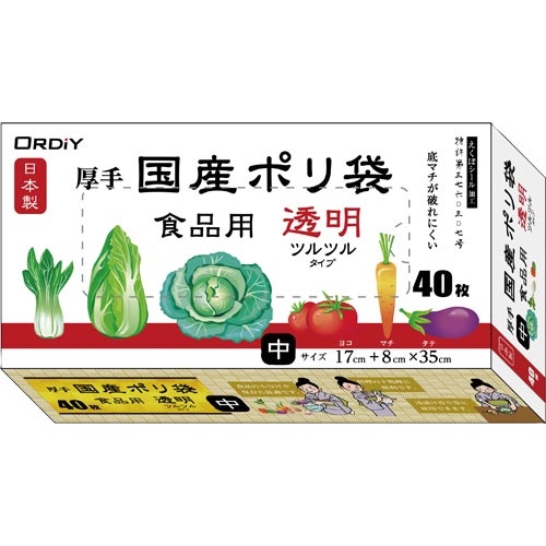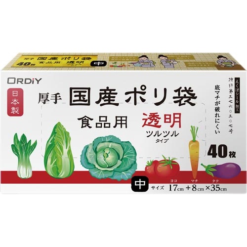 国産ポリ袋マチ付 食品用 中 透明 40P