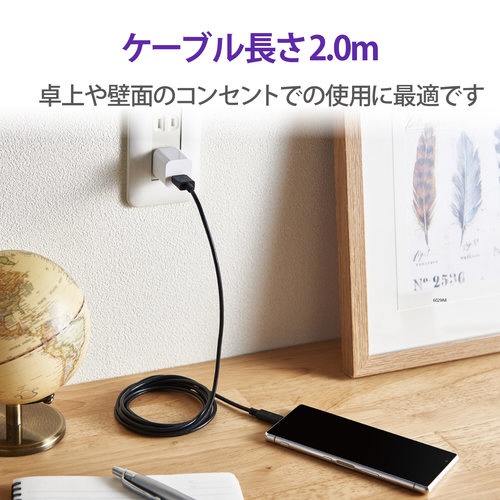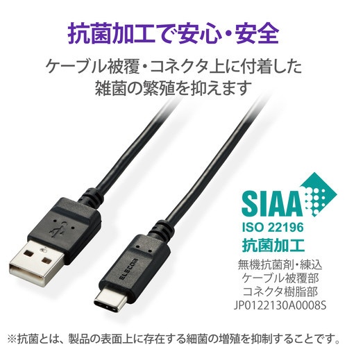 2. USB−Cケーブル 形状記憶 抗菌 2m ブラック