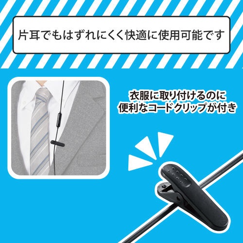 2. 片耳イヤホン マイク付 カールケーブル ブラック