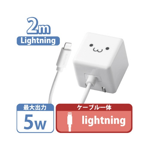 ライトニングケーブル一体AC充電器/2.0m/WF