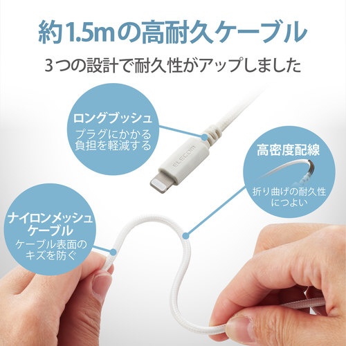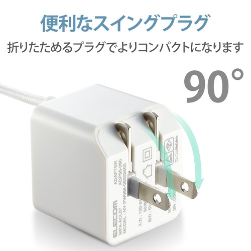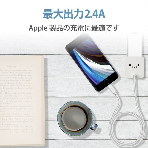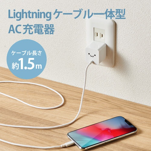 ライトニングAC充電器 高耐久ケーブル一体 顔