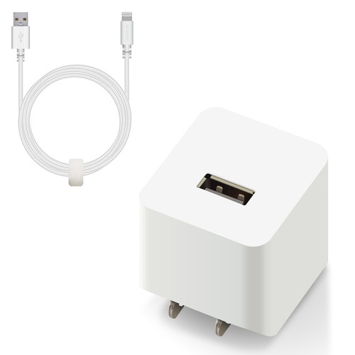 ライトニングAC充電器 高耐久ケーブル1.5m 白