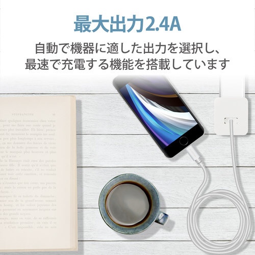 2. ライトニングAC充電器 高耐久ケーブル1.5m 白