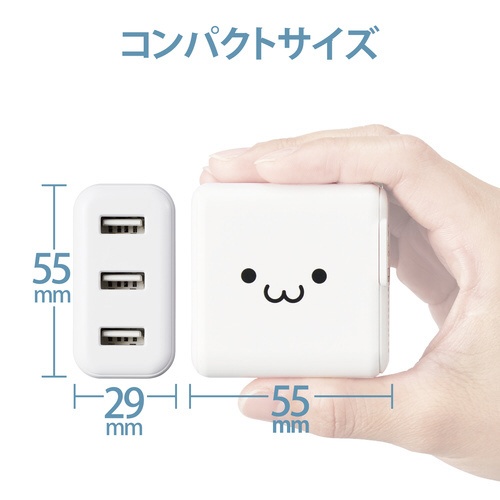 AC充電器 3.6A USB 3ポート ホワイト顔