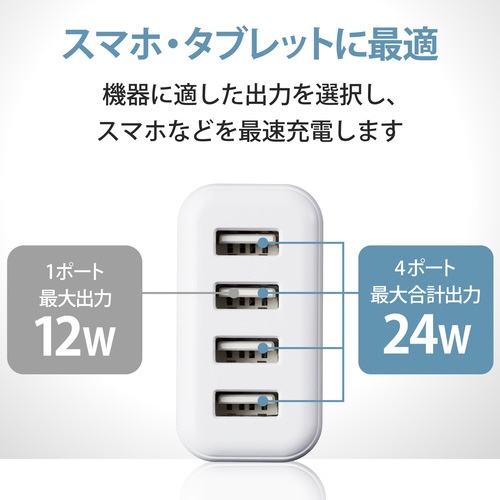 AC充電器 4.8A USB 4ポート ホワイト顔