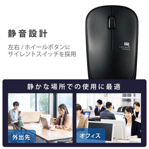 IRマウス 無線 省電力 静音 抗菌 ブラック