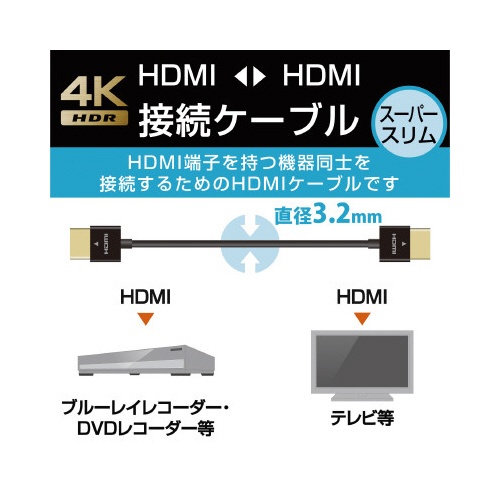 2. HDMIケーブル 超スリム 1.0m ブラック