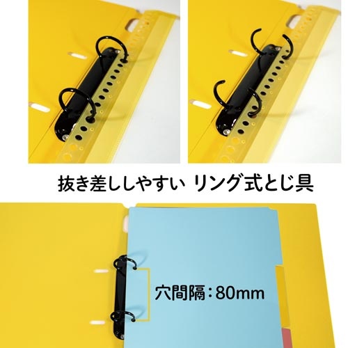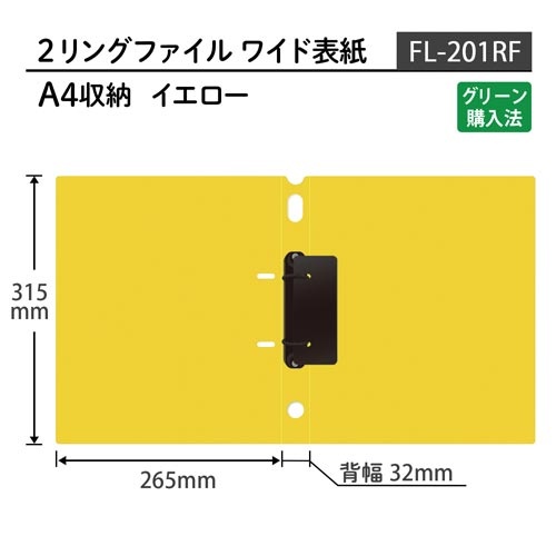 2リングファイル ワイド表紙 A4縦 イエロー
