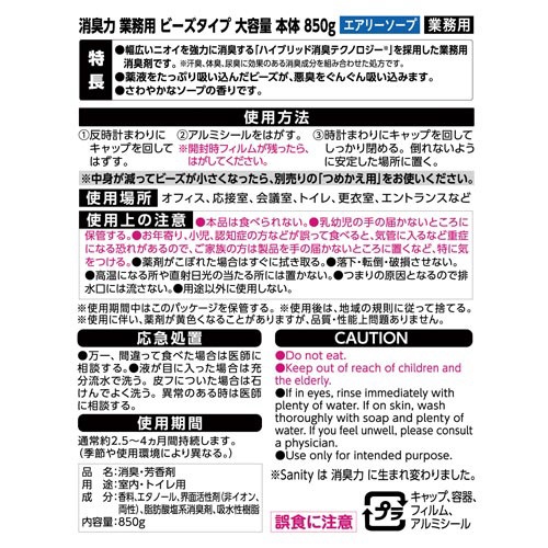 2. 消臭力業務用ビーズ大容量本体エアリーソープ850g