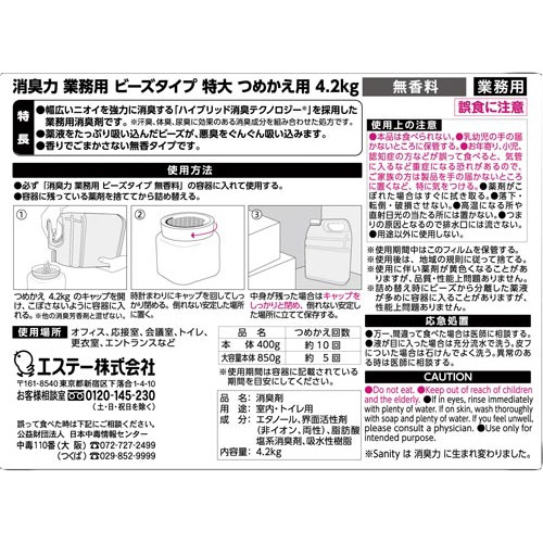 消臭力業務用ビーズ特大詰替 無香料 4.2kg