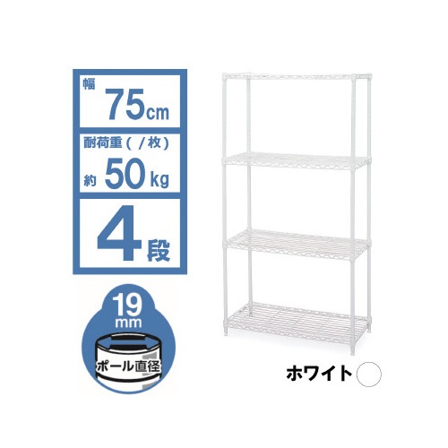 カラーメタルラック 幅750×高1230 ホワイト