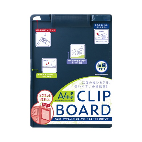 2. 抗菌 マグネット付クリップボード A4 ネイビー