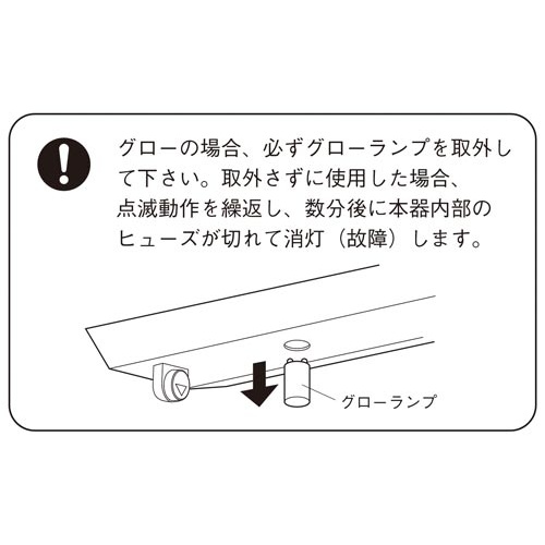 注意事項 | ※グローの場合、必ずグローランプを取り外して下さい。 ※AC電源直結の場合、蛍光灯器具の配線工事が必要となります。 ※お近くの電気工事専門業者にご依頼下さい。(片側、両側給電に対応) ※【返品に関するご注意】開封後はお客様のご都合による返品はお受けできません。 以下の点にご注意ください