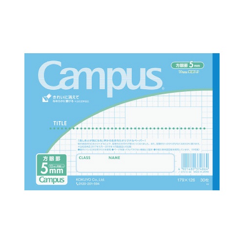 キャンパスノート用途別5mm方眼罫ハーフサイズ青