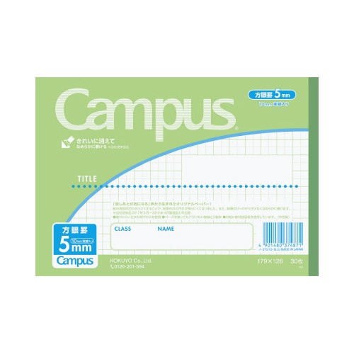 キャンパスノート用途別5mm方眼罫ハーフサイズ緑