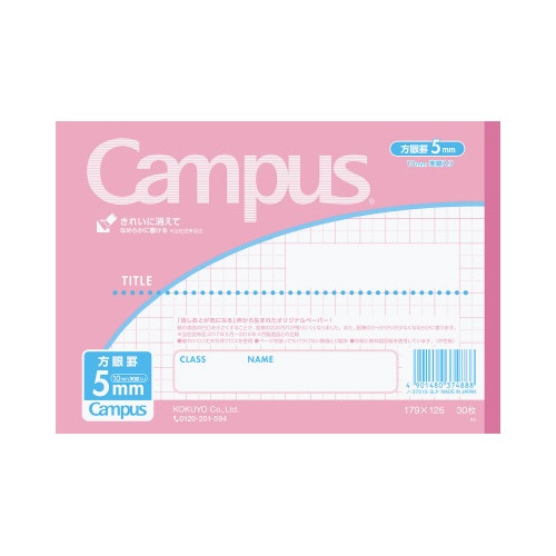キャンパスノート用途別5mm方眼罫ハーフサイズ桃