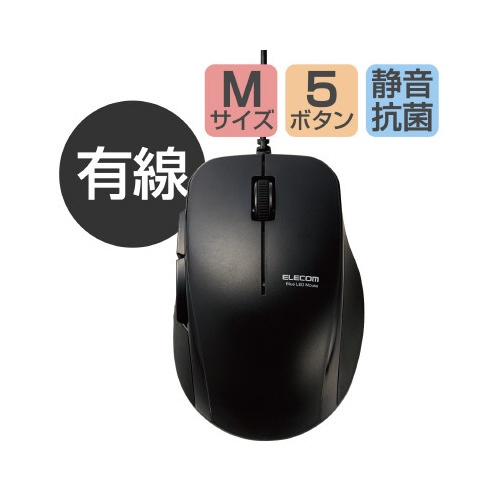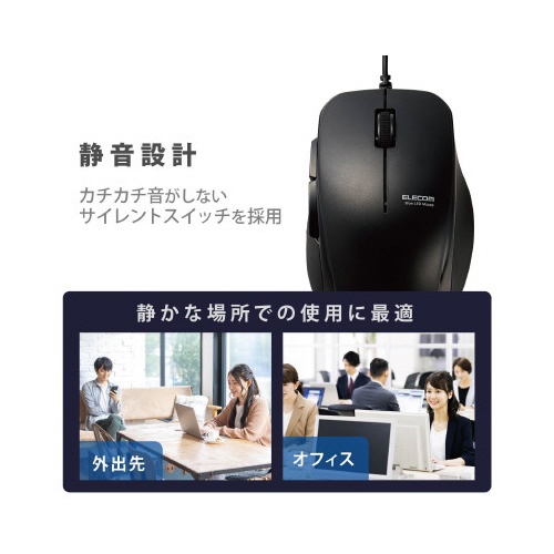 BlueLEDマウス 有線 静音 ブラック