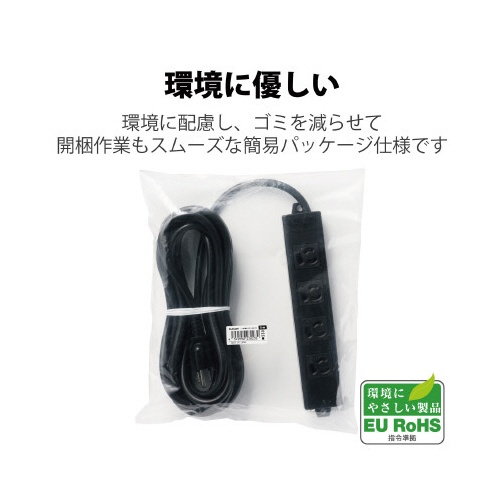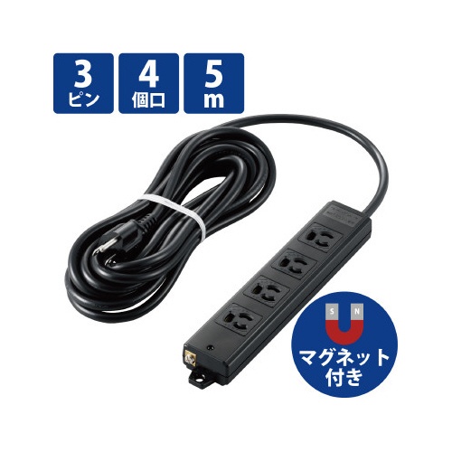 2. 電源タップ 3P 4個口 黒 マグネット 5m