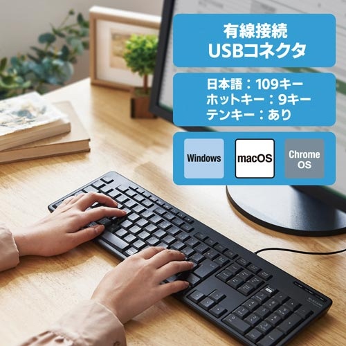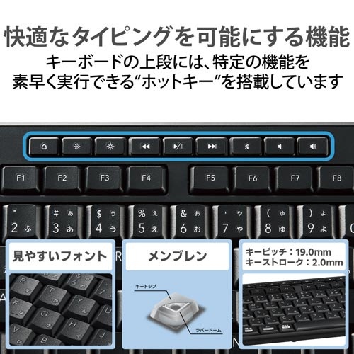 2. 有線キーボード 静音 フルキー 抗菌仕様