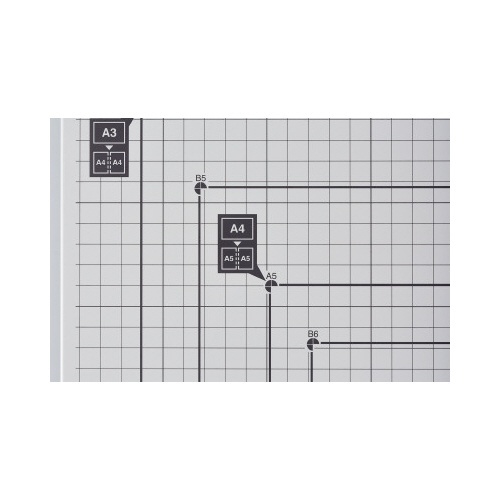 ※裁断表示能力は、PPC用紙64g/m2を使用時の数値です。再生紙の場合はセットできる枚数が若干少なくなったり、必要な往復回数が増えることがありますのでご注意ください。