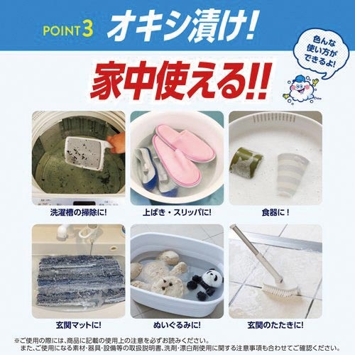 注意事項 | ※用途外のご使用はおやめください。 ※熱湯でのご使用はおやめください。 ※必ず使用前に目立たない場所で試し、乾燥させた後、色落ちがないかを確認してからご使用ください。 ※本剤と水を混ぜる際は、容器に顔を近づけ過ぎないでください。 ※密閉した容器で混ぜたり、放置しないでください。容器が膨張し破裂することがあります。 ※換気をして使い、使用後はよく手を洗ってください。 ※お子様やペットの手の届かない場所に保管してください。 ※直射日光を避け、高温になる場所では保管しないでください。 ※商品容器に水や他の物を入れないでください。 ※洗濯洗剤以外(アンモニアを含む製品、還元系漂白剤、塩素系漂白剤、家庭用洗剤)とは混ぜないでください。 以下の点にご注意ください