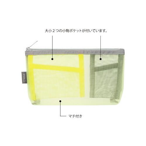 ペン&ツールポーチ メッシュ マチ付 黄緑