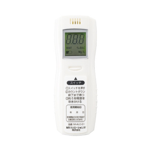 | 注意事項 | ※【返品に関するご注意】開封後はお客様のご都合による返品はお受けできません。 ※測定回数等は約1000回、又は約1年間でどちらか到達の早いほうで寿命になります。 ※電池は常に同時にお取替え下さい。 ※本品の表示の数値だけでのご判断はお避け下さい。 ※本品での運行管理、業務管理に関するトラブルの一切の責任は負いませんのでご了承下さい。 ※口腔洗浄剤の服用後、高温多湿、低温、風の強い場所、においが強い場所、空気が汚れている場所、水のかかる場所などでのご使用を避けて下さい。 ※正しい数値の表示ができません。 ※取扱説明書で商品の特徴をよくご理解の上でご使用下さい。 以下の点にご注意ください