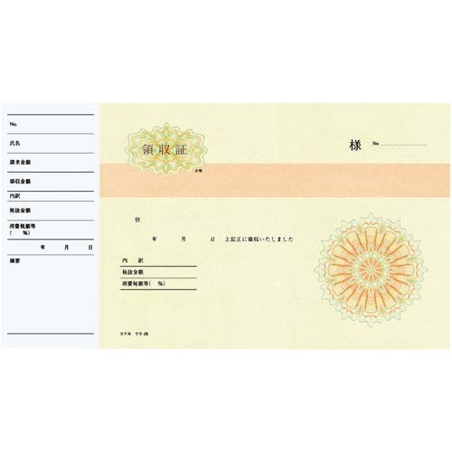 領収証 B6ヨコ 三色刷り 50枚 ウケ−25×5