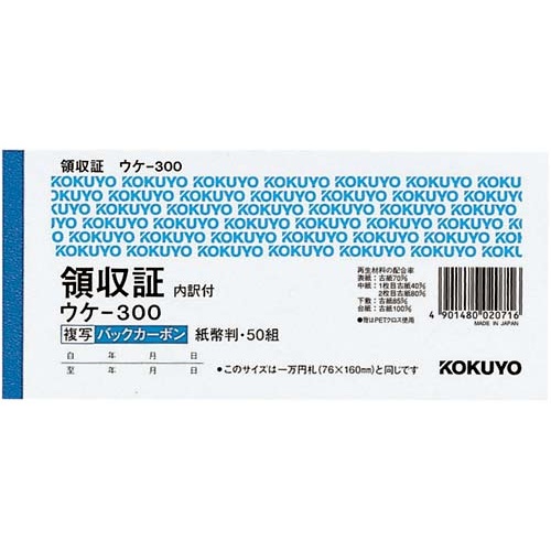 複写領収証紙幣判ヨコ50組スポットタイプ 10冊