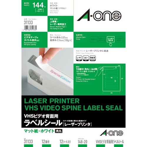 紙ラベル レーザー用 12面ビデオ背用 12枚