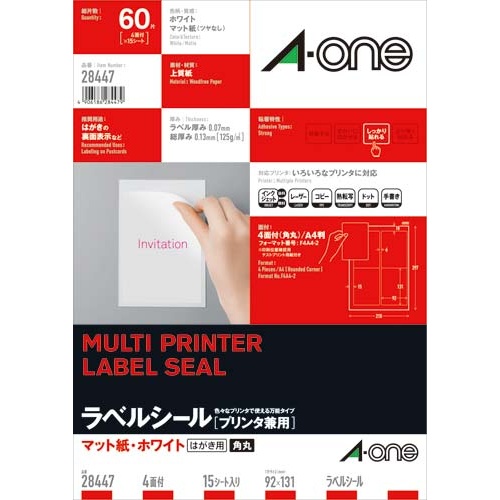 上質紙ラベル 兼用 A4 4面角丸 15枚