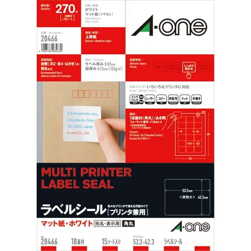 上質紙ラベル 兼用 A4 18面角丸 15枚