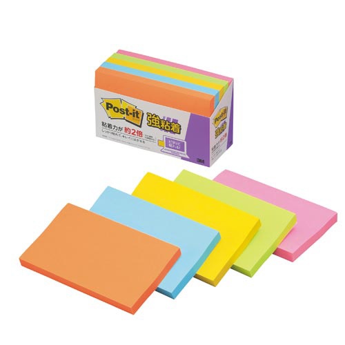 ポストイット 強粘着 75×127ネオン混色 5冊
